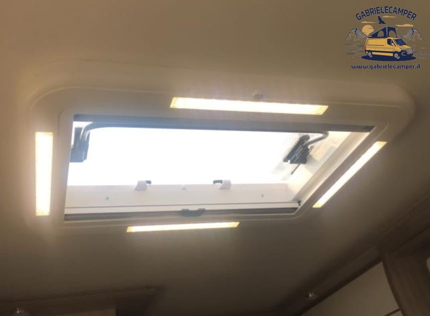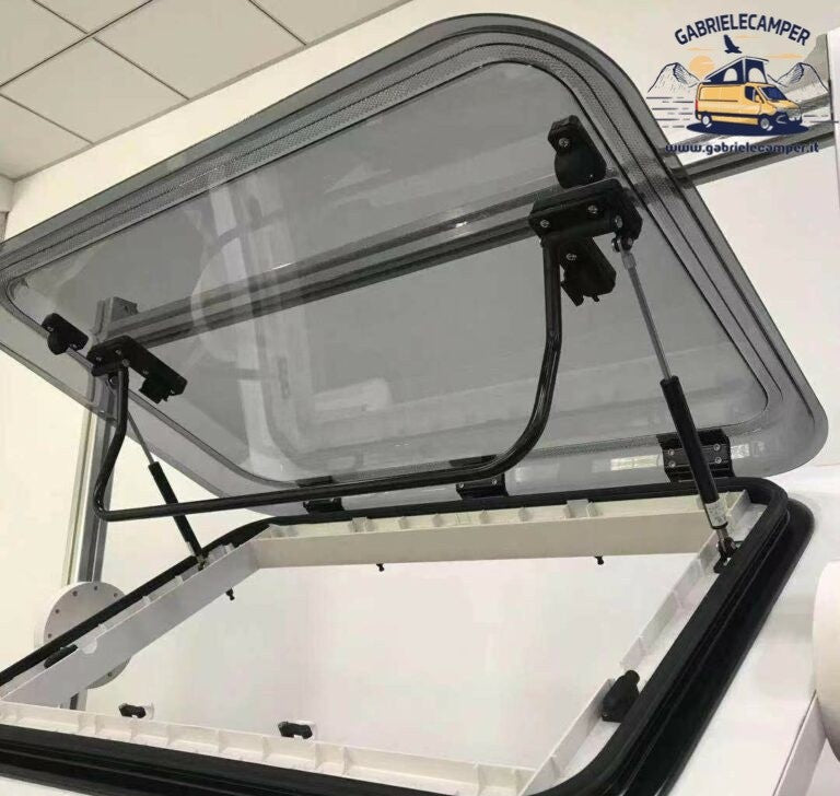 Grazie alla cupola piatta, il rumore in marcia all'interno del veicolo è molto basso. Il semplice utilizzo con una sola mano grazie all'impugnatura ad arco, consente di posizionarlo con un angolo fino a 180°. Azionando il meccanismo di apertura, la cupola si blocca e si sblocca automaticamente. Il telaio esterno a doppia parete garantisce un migliore isolamento. Il telaio interno protegge in modo affidabile dai raggi solari e/o dagli insetti. Con illuminazione a 12V.